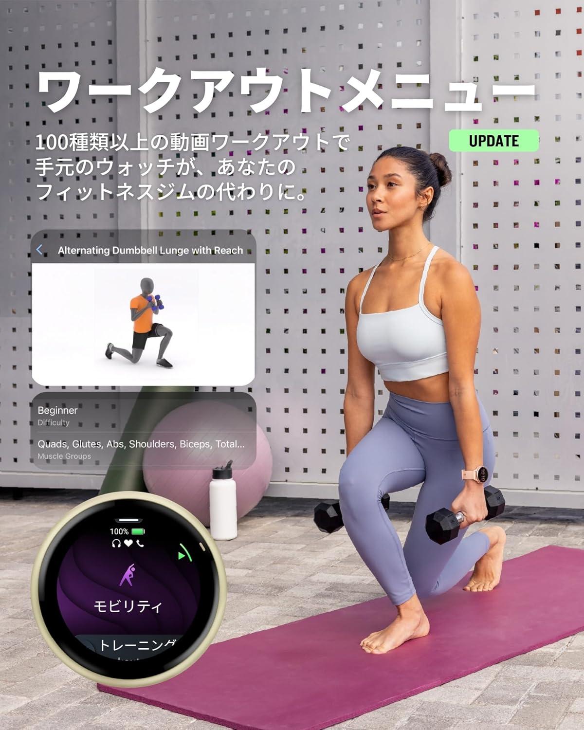 100種類以上のワークアウトを動画で指導してくれるため、まるで手首に小さな専属コーチが付き添ってくれている頼もしさ。
