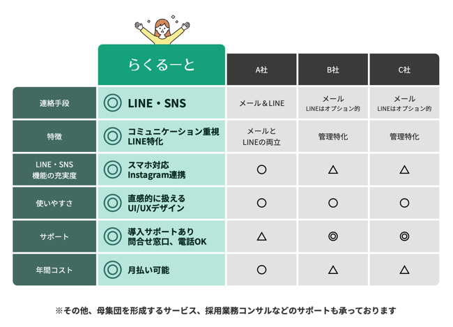 LINEで簡単に採用連絡ができるサービス「らくるーと」詳細はコチラ!