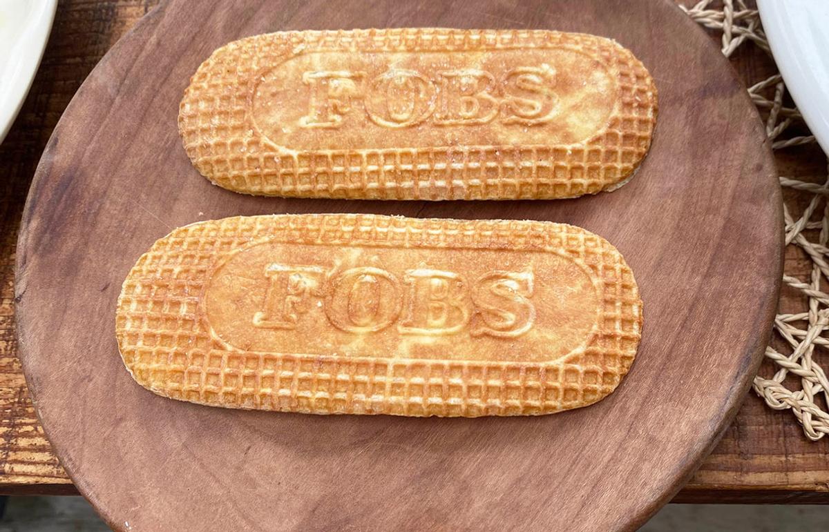 「FOBSのゴーフレット(バニラビーンズがサンドされている)」。トマトのパン粥は、やっぱり美味しい。