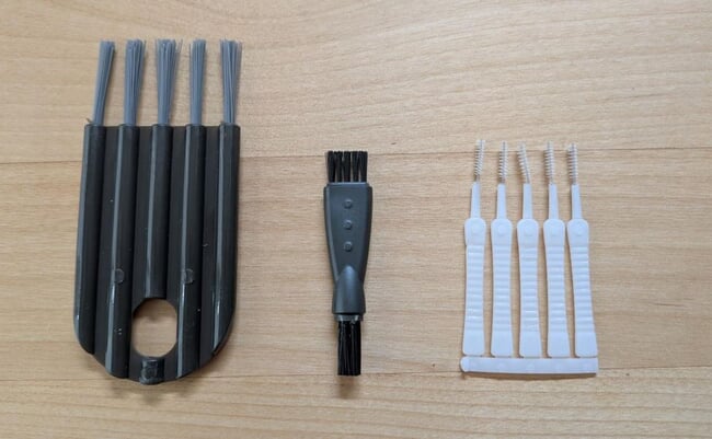 大きい黒ブラシ・ミニ黒ブラシ・ミニミニ白ブラシの3種類が入っていて、キレイにしたい場所によって使い分けができるんです。
