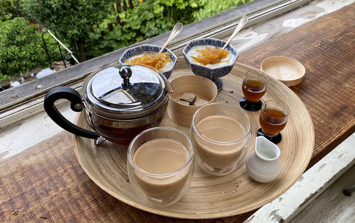 ヨーグルト、ミルクティ、本日の元気、ウエハース。