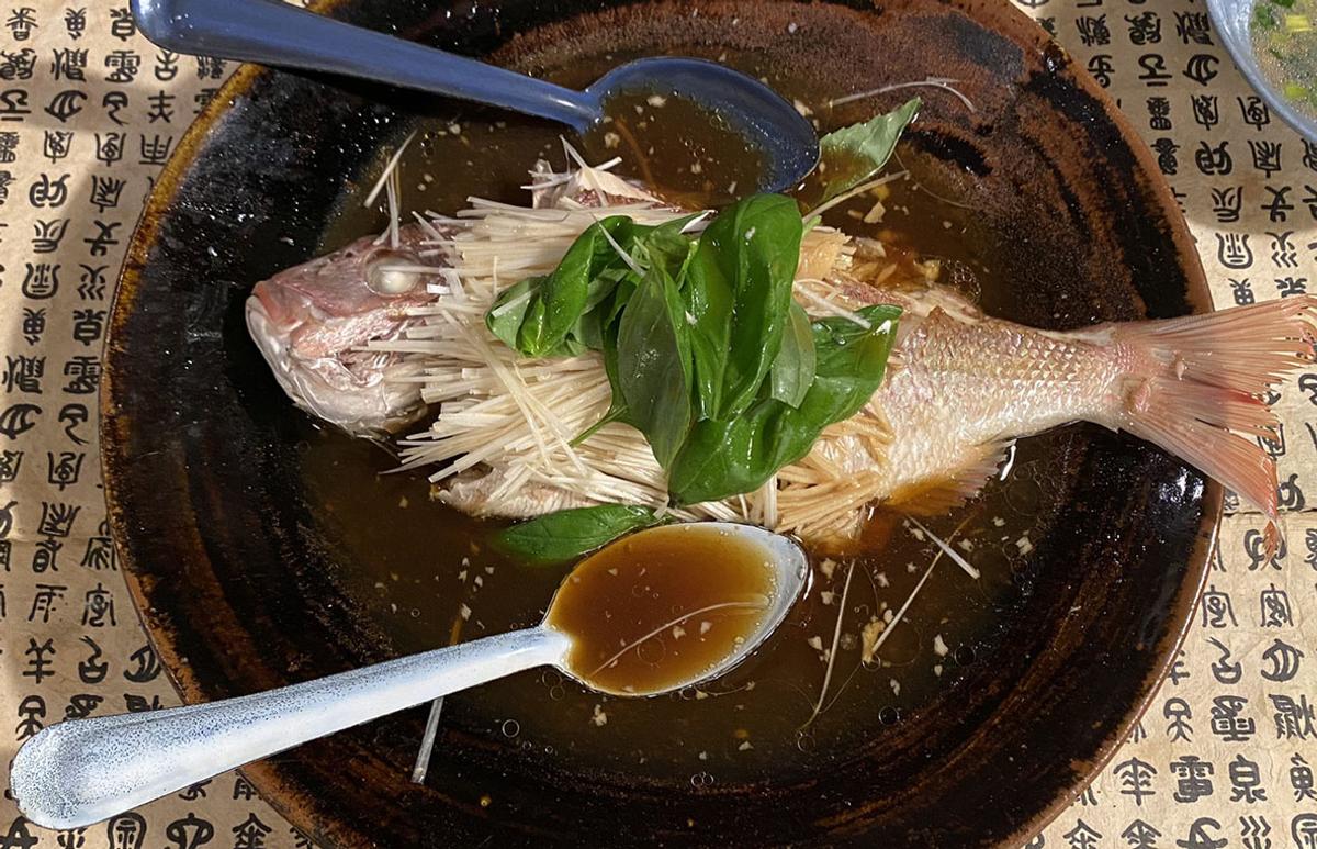 ハマグリはニンニク生姜、ナンプラー味。真鯛は黒酢入りのお汁に熱々の胡麻油をジュワッとかけて、バジルを載せて。2料理ともに超簡単調理なのに、美味しい、美味しい。