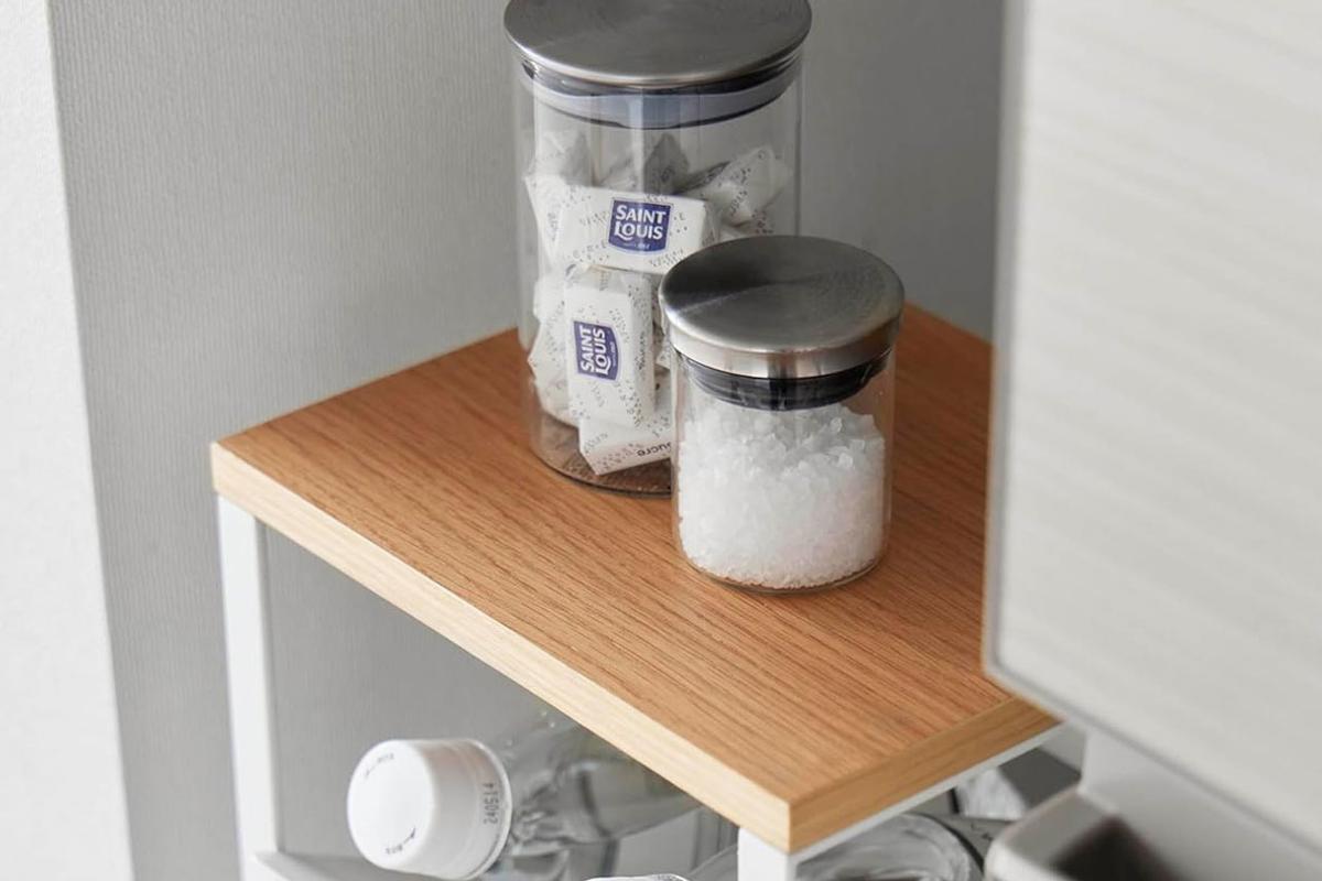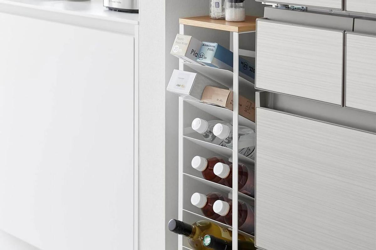 そんな悩みを解消してくれそうなアイテムが、山崎実業の「天板付きボトルストッカー」です。