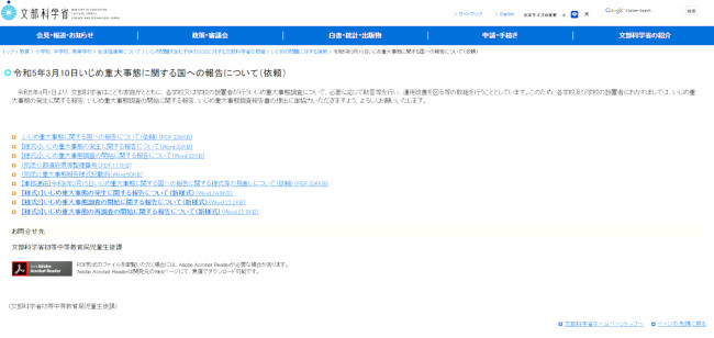 令和5年3月10日いじめ重大事態に関する国への報告について(依頼)
