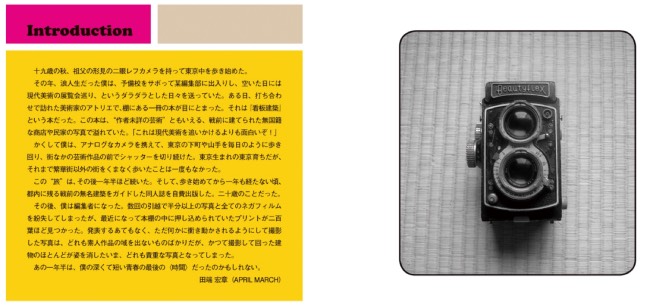 本文の内容は、1994-95年頃に祖父の形見の二眼レフカメラで私が撮影した戦前の看板建築を、その後に取り壊された現在の風景と並べて掲載し、東京という街のビフォーアフターを嘆くという写真集で、着想の原点は『ペット・サウンズ』に収録のラストナンバー「キャロライン・ノー」の歌詞です。