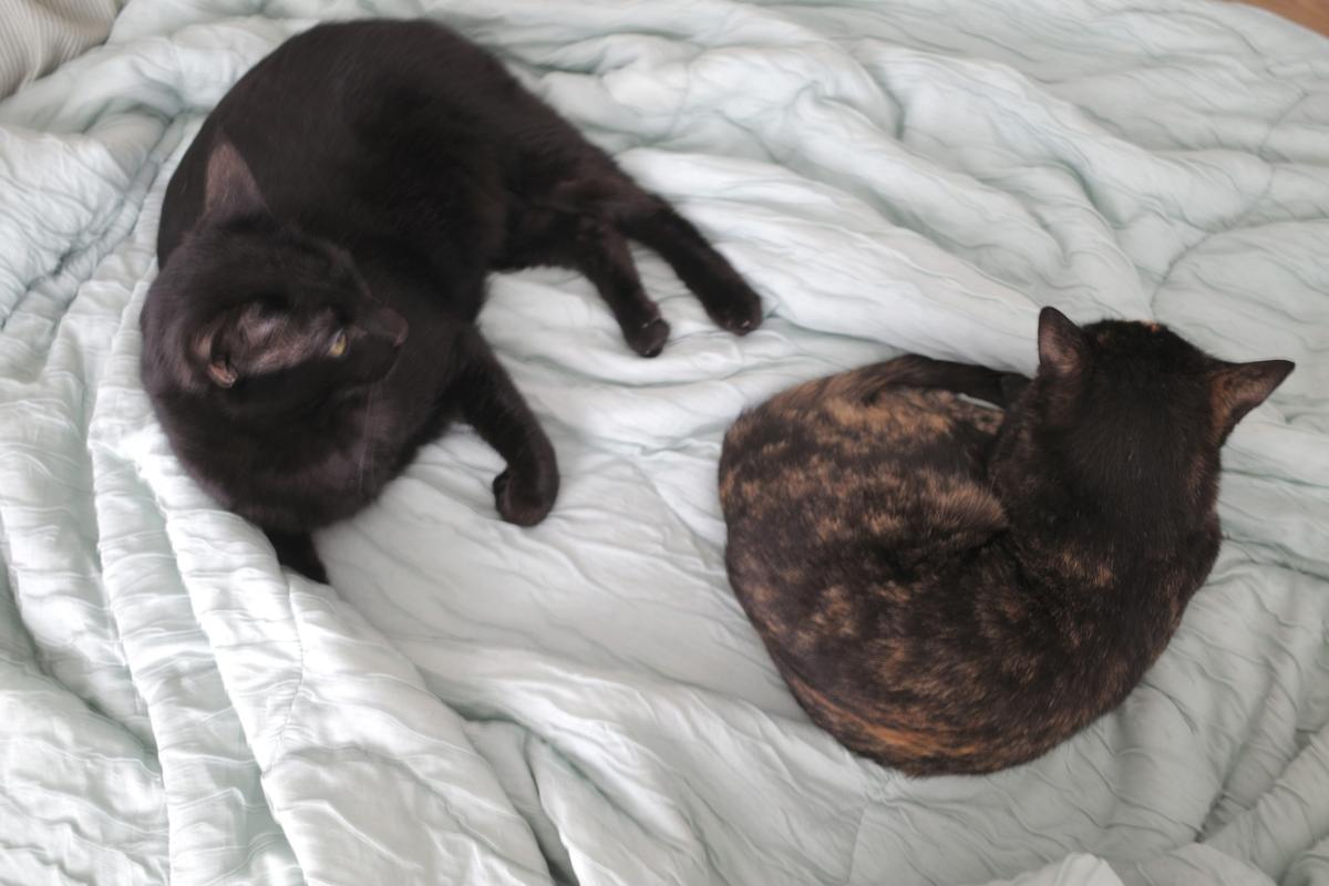早くも、我が家の猫たちが気に入ってしまった様子!「もはや、エアコン。® さらひやケット」を広げておくと、気づけばその上で寝ています。