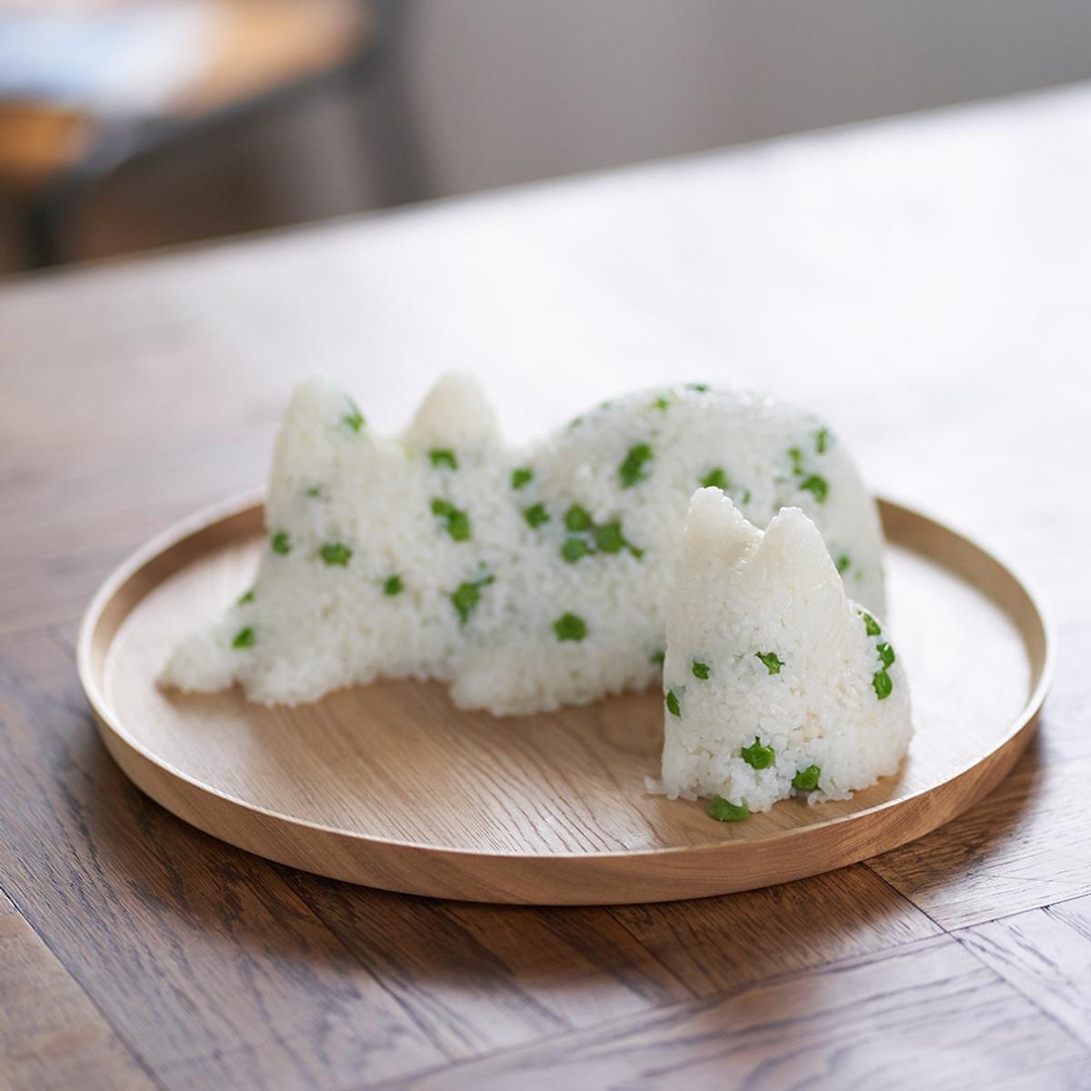 ②ライスの型:耐熱150°Cなので、ピラフなどの味付きやカレーに添える白米・サフランライスなどのネコ型どりに
