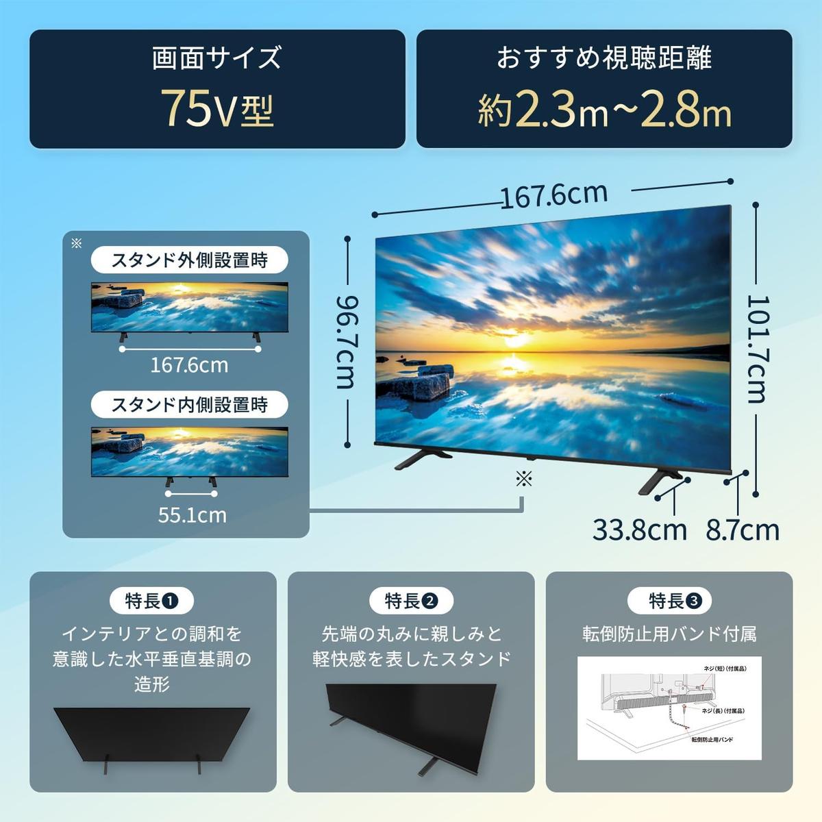 「REGZA 75インチ 4K液晶テレビ(75E350M)」は、75V型の大画面を誇る液晶テレビ。
