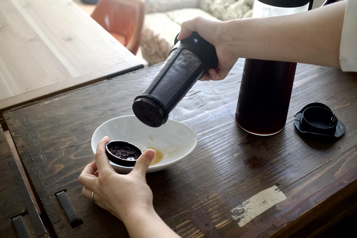 仕込み開始からここまで3分もかからないくらい。寝る前に仕込んでおけば翌朝には美味しい水出しコーヒーができているって最高ですね。
