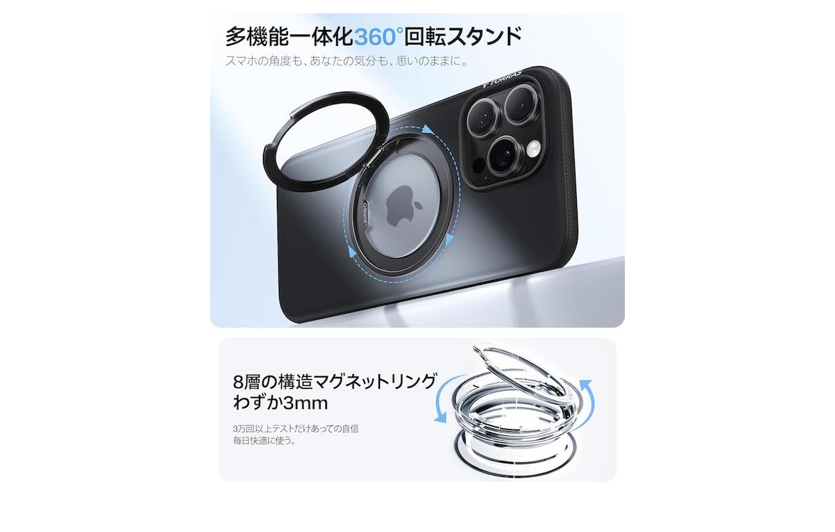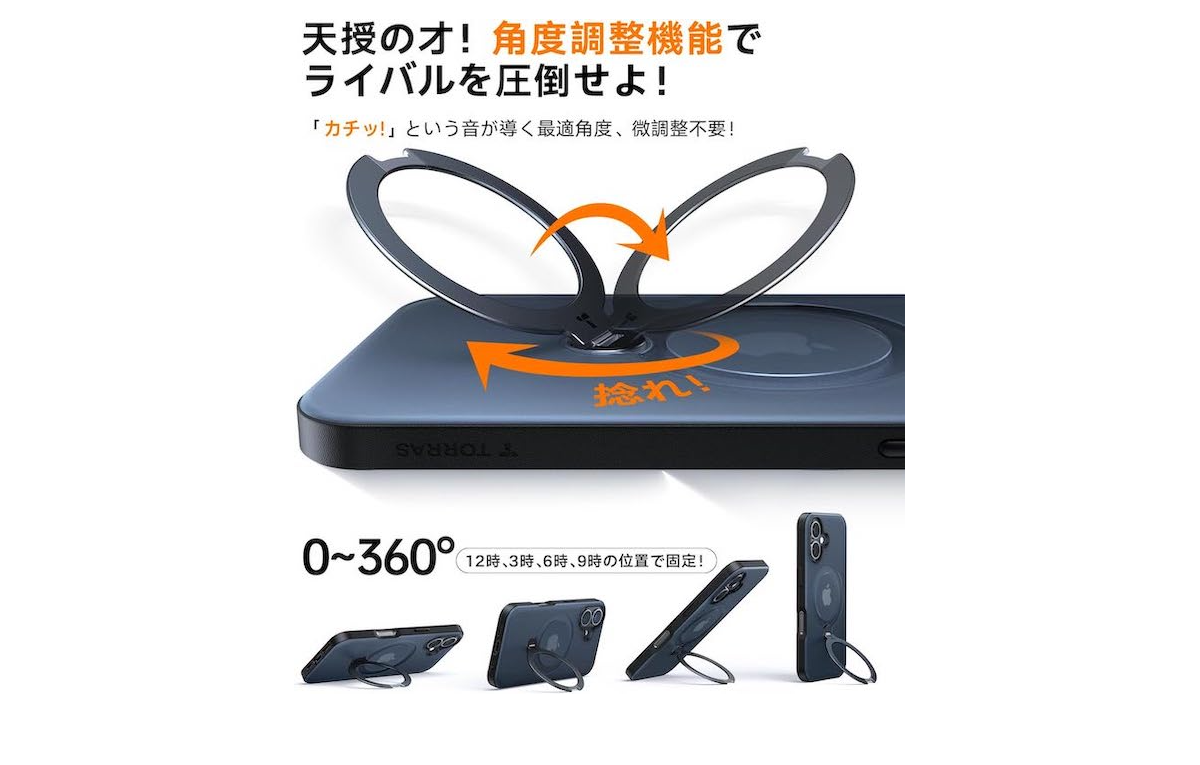 ゼンマイ式の360度リングを搭載した、TORRAS(トラス)の「Ostand Spin」もiPhoneユーザー必見のアイテムです。