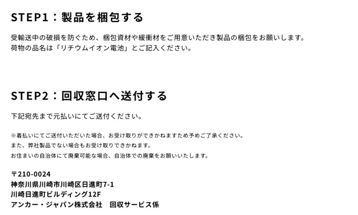 ちなみにAnker Storeでもモバイルバッテリー回収サービスを行なっているそうです。