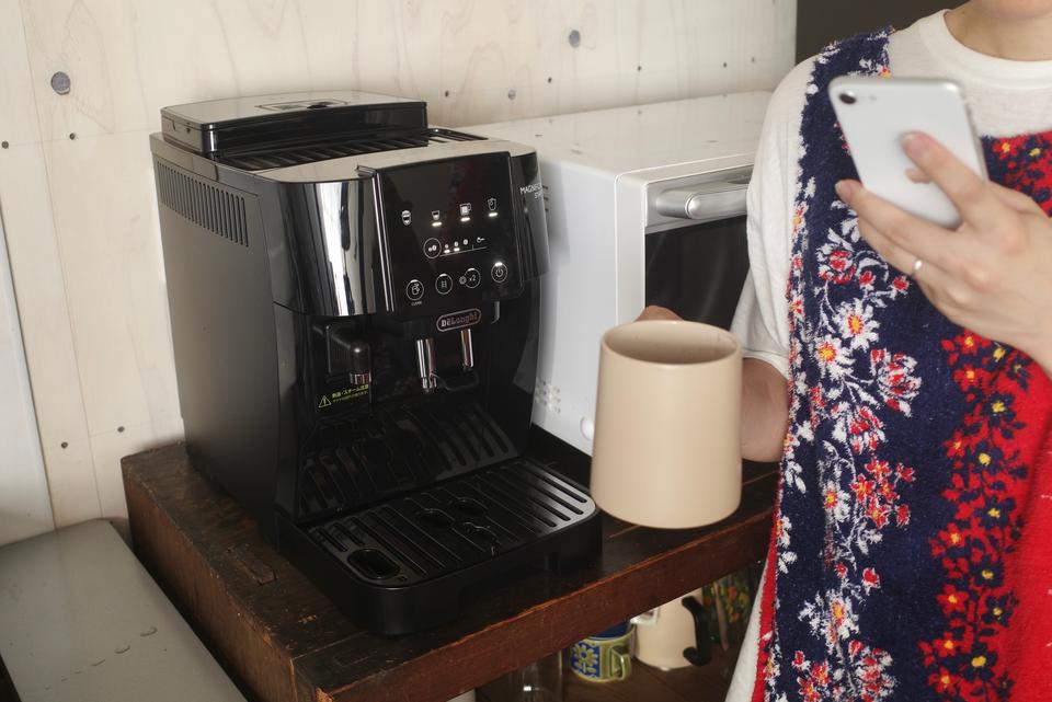 でも、豆から挽いてミルクフォームまで一気にやってくれるというなら、一度は体験してみたい。そう思って今回お借りしてみたのが、De’Longhi(デロンギ)の「マグニフィカ スタート」。