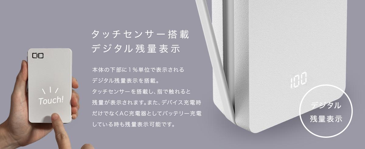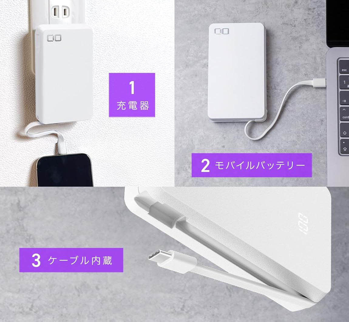 名前の通り、プラグとケーブルが内蔵されていることが特徴のモバイルバッテリーです。
