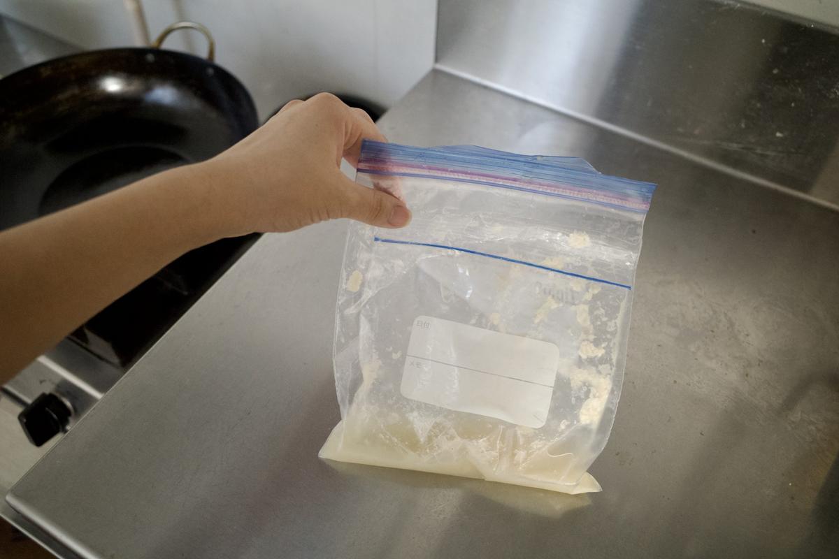 ただ、保存方法は納得できていませんでした。ラクさ重視でジッパーバッグに入れていたところ、使っているうちにギトギトになってしまうんですよね。瓶は煮沸が面倒なわりに使いにくいし……。