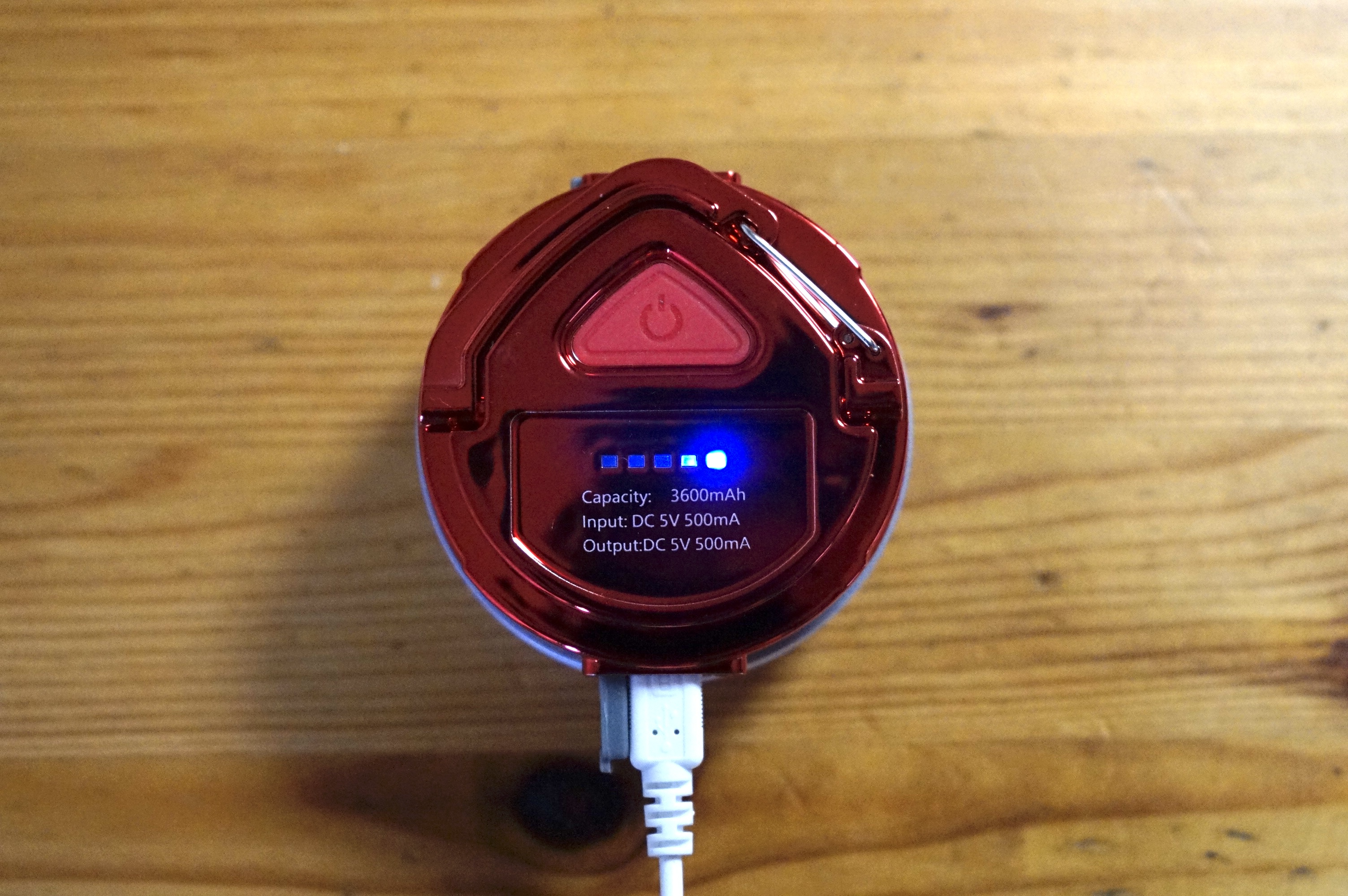 バッテリー容量が3,600mAhなので、スマホをフル充電するにはちょっと心許ないのですが、キャンプで充電切れになった際や災害時で充電できないときなど、緊急時にはとても助かる機能です。