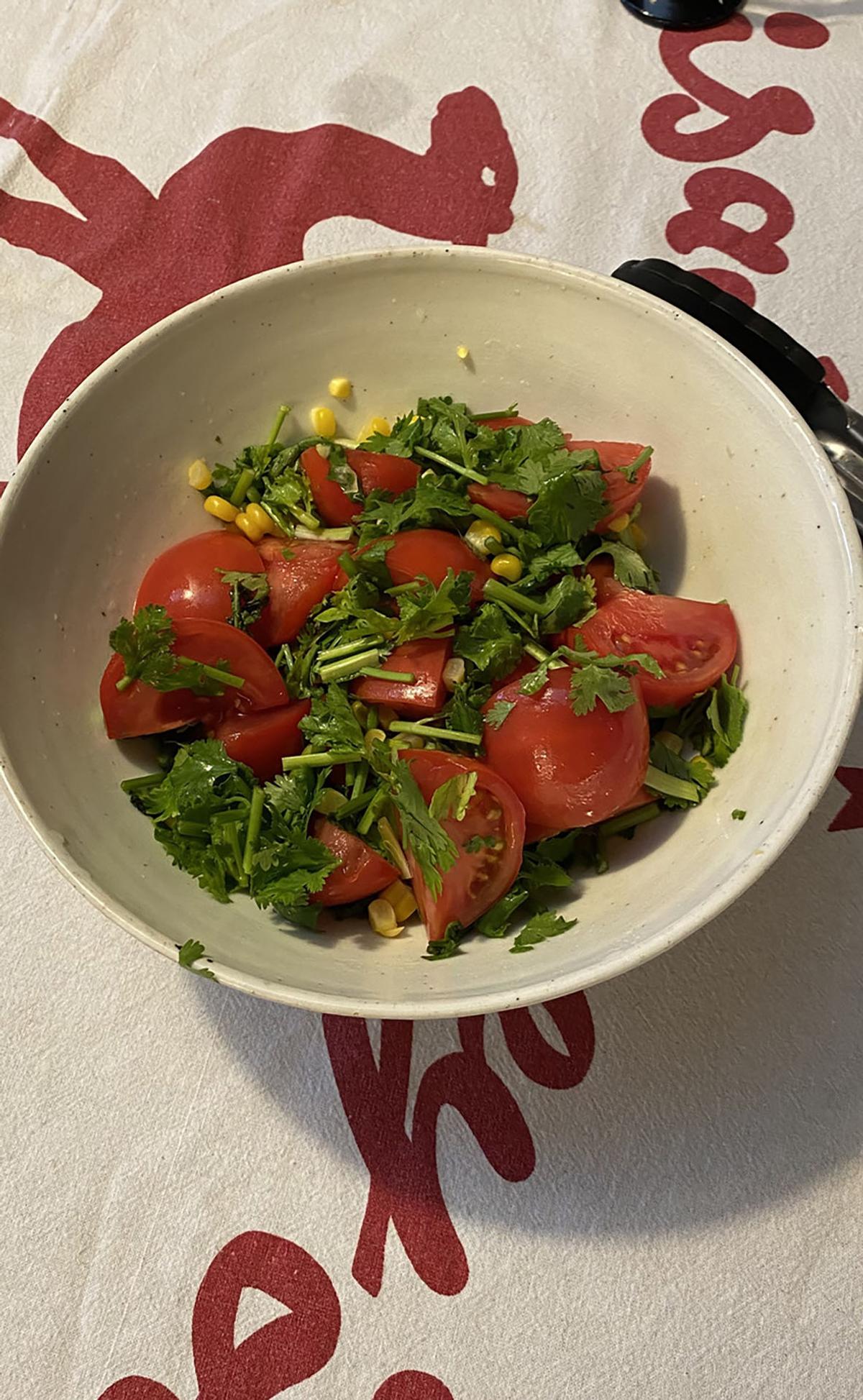 冷凍してあったPIZZA生地を解凍。「PIZZA一緒に食べませんか?」お隣さんに声をかける。即座に「お邪魔します」の返事。