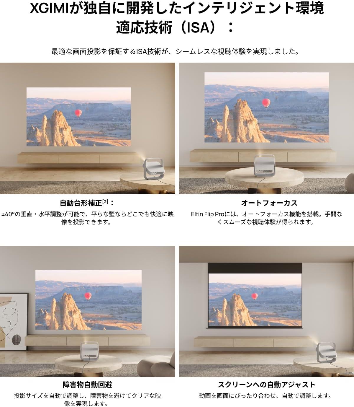 Elfin Flip Proはそんな煩わしさを解消するインテリジェントスクリーンアダプション(ISA)技術を搭載。オートフォーカス、自動台形補正、障害物自動回避、スクリーン自動調整といった機能により、電源を入れるだけで最適な映像を映し出します。