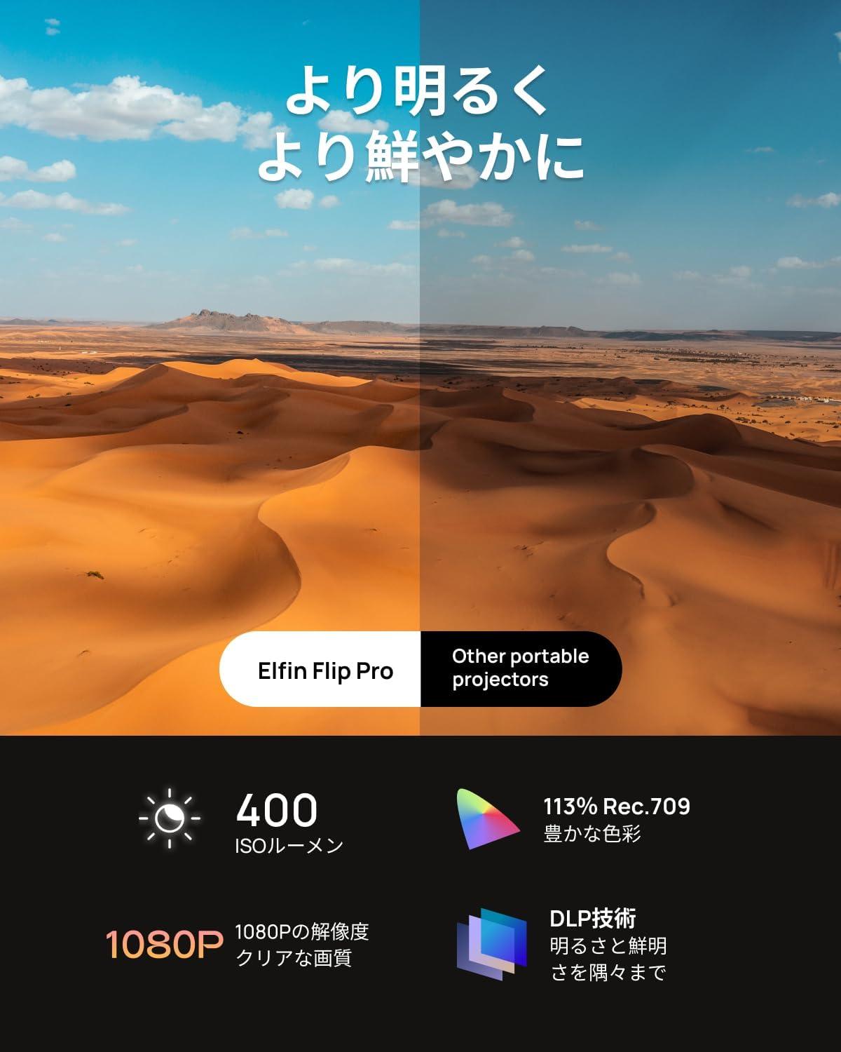 厚さわずか64mmのスリムボディながら、1080P解像度と400 ISOルーメンの明るさで鮮明な映像を映し出します。