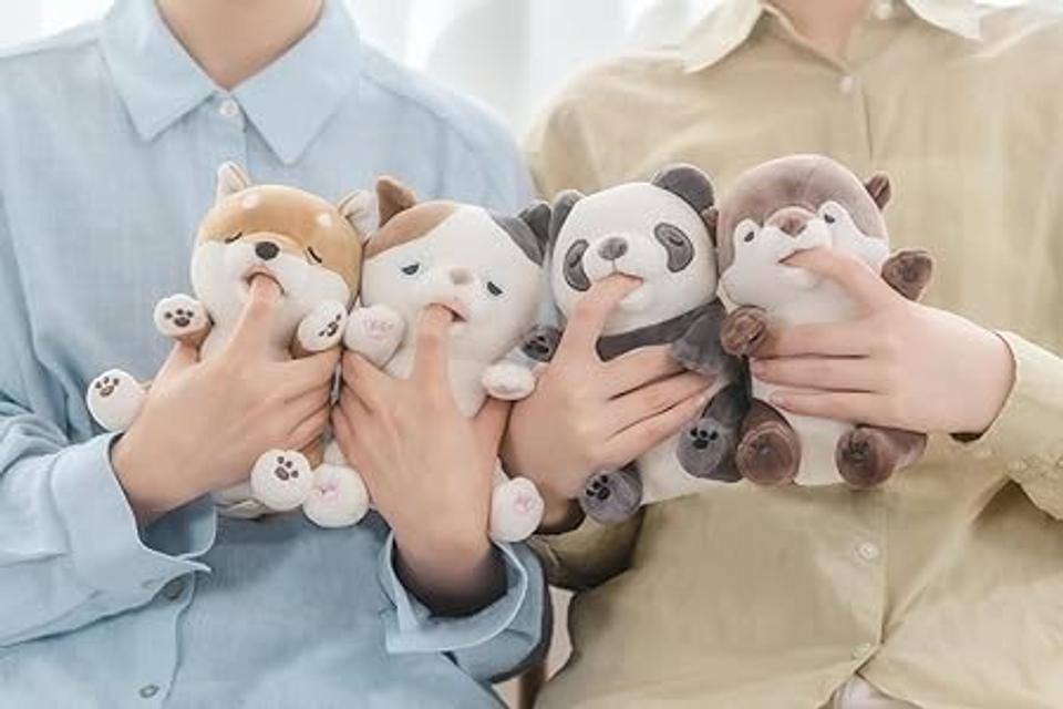 「甘噛みハムハム」の魅力は、なんといっても愛らしいぬいぐるみデザイン。リビングに置いておくだけでも、見ているだけで心が和む存在感があります。