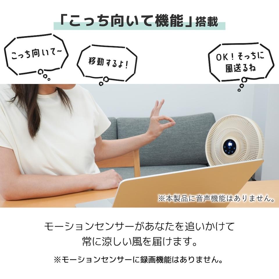 「むきせん」はモーションセンサーで人の動きを察知し、人のいる場所に合わせて風向きを自動調整してくれるスマートな扇風機です。