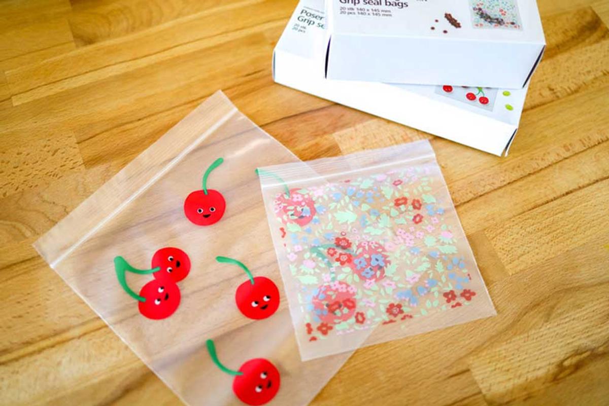 写真はフライングタイガーのものですが、ほかにもIKEAやニトリなど、サイズや柄もいろいろ。ちなみに絶対に雨が降りそう……というときは、やっぱり「ジップロック」が安心だったりします。
