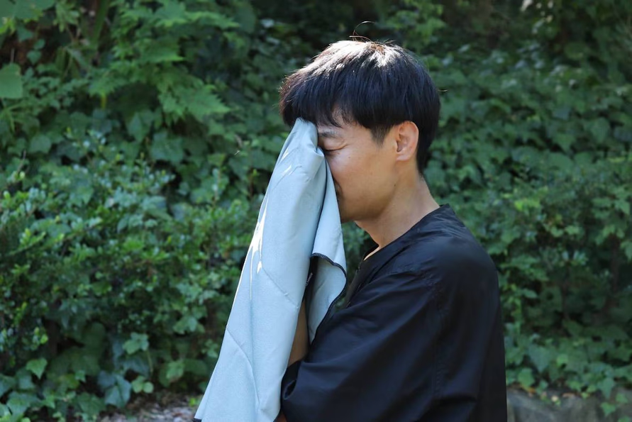 日よけにもタオルにも使える「てぬぐい」(マツザキ)