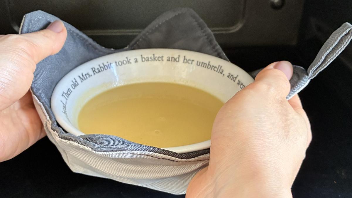 布製のこのマットは、器の下に敷いてそのまま一緒にレンチンOK!