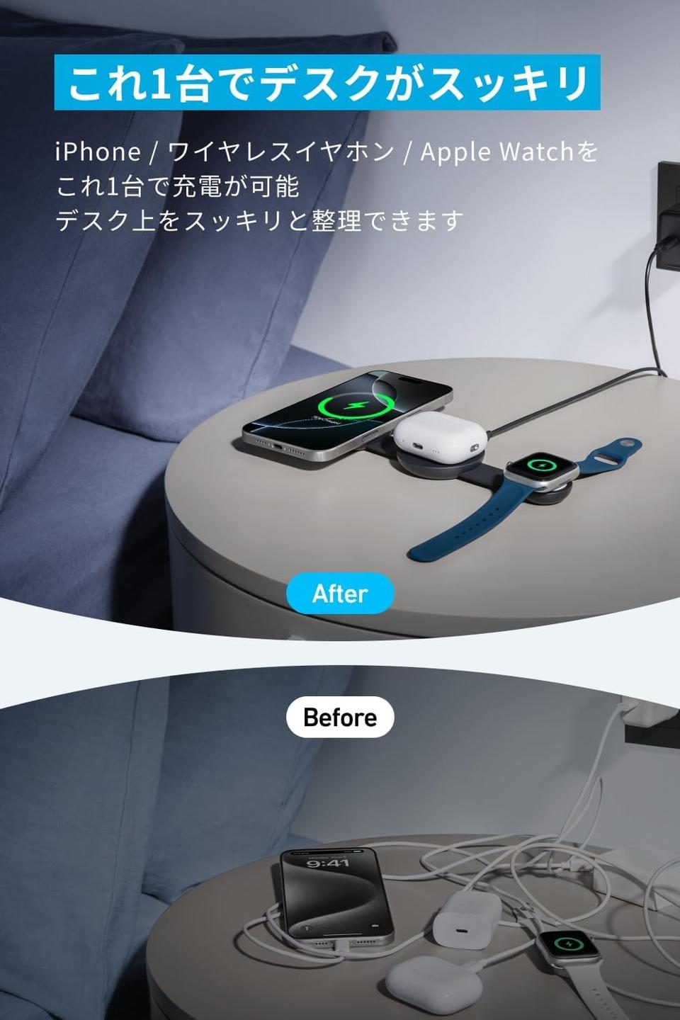 1台でiPhoneやApple Watch、Air Podsを同時充電できる、Anker(アンカー)の「MagGo Wireless Charging Station(3-in-1, Foldable Pad)」が31%オフの大特価で販売中。