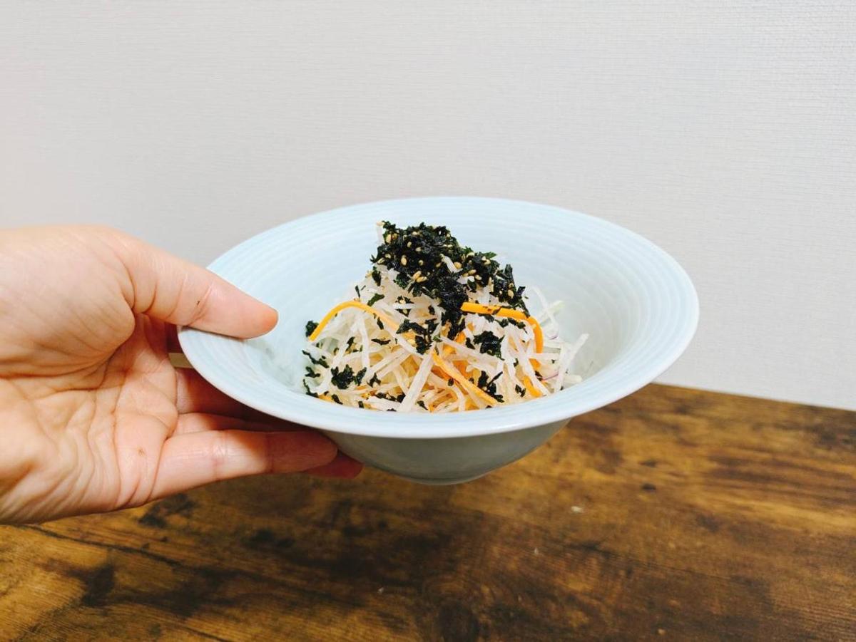 市販の大根サラダにふりかけるのは、もっとカンタン! ふだんサラダをあまり食べないのですが、ドレッシングに加えてザクザクわかめをふりかけると箸が進む進む。ほかにもキャベツやオニオンスライスなど、野菜をもりもり食べたいときに大活躍です。