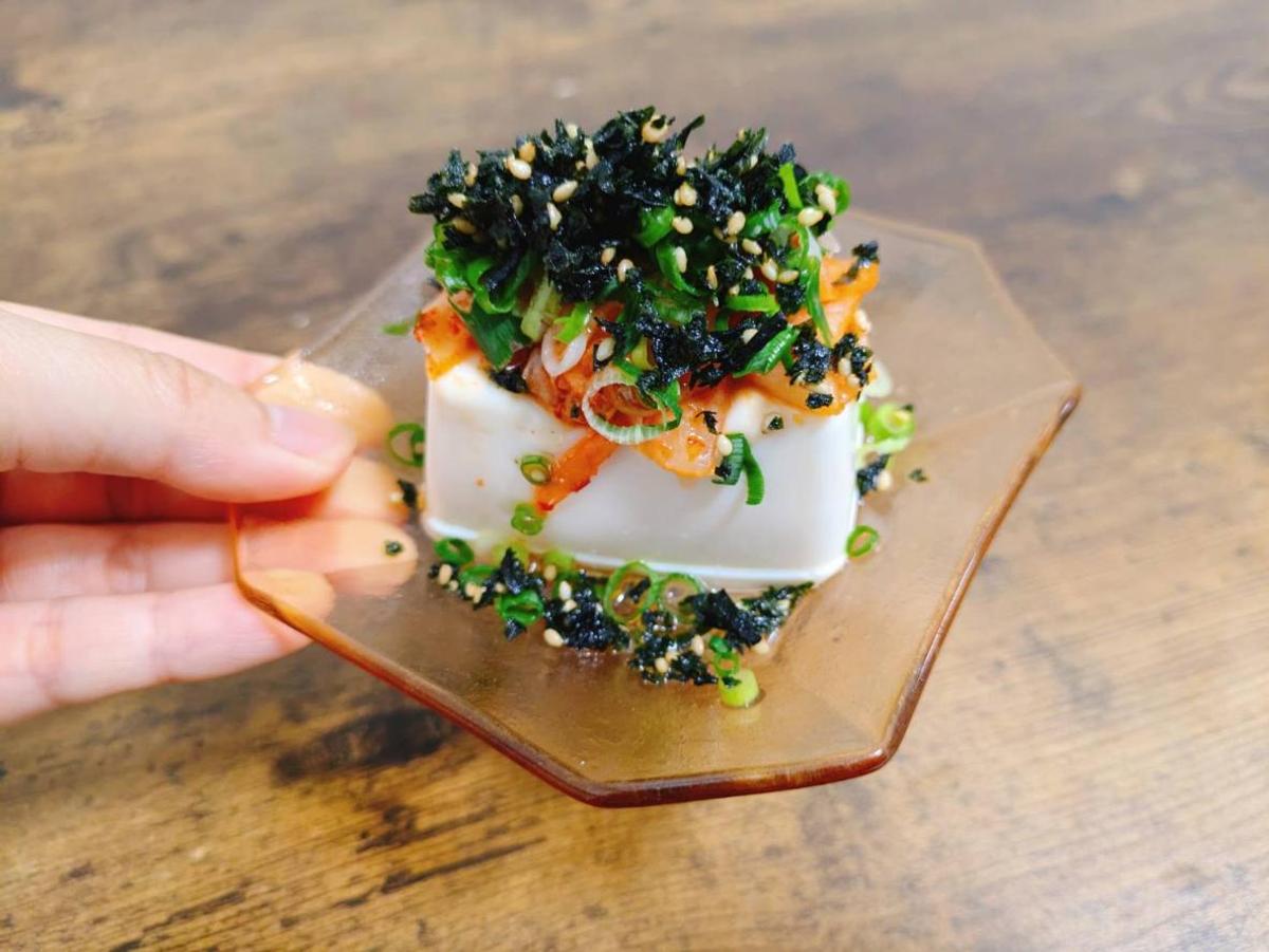 豆腐にのせるなら、キムチや小ねぎも一緒にたくさんふりかけるのがミソです。何にふりかけても、お店で出てきそうなものに仕上がるのがうれしいですね~!
