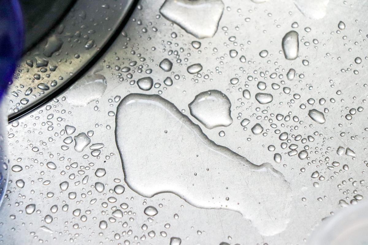 気合いを入れた掃除はほとんどしていないにも関わらず、側面はまだまだ水を弾きます。