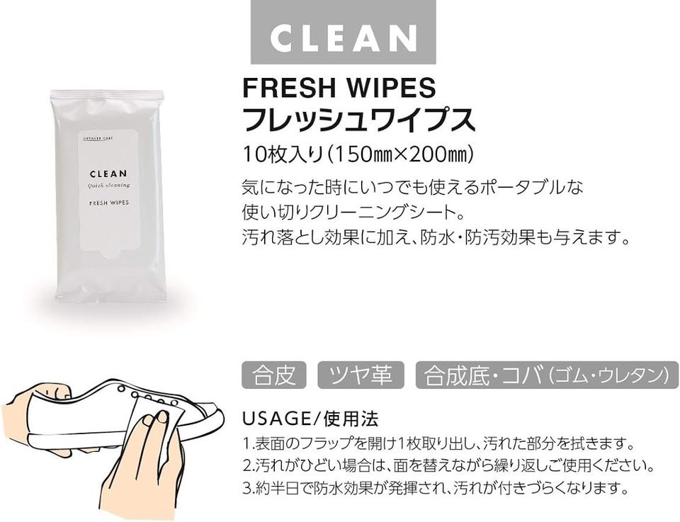 FRESH WIPES(フレッシュワイプス)」は汗拭きシートのような要領で、汚れた時にすぐ取り出して簡単に汚れを落とすことができるアイテム。