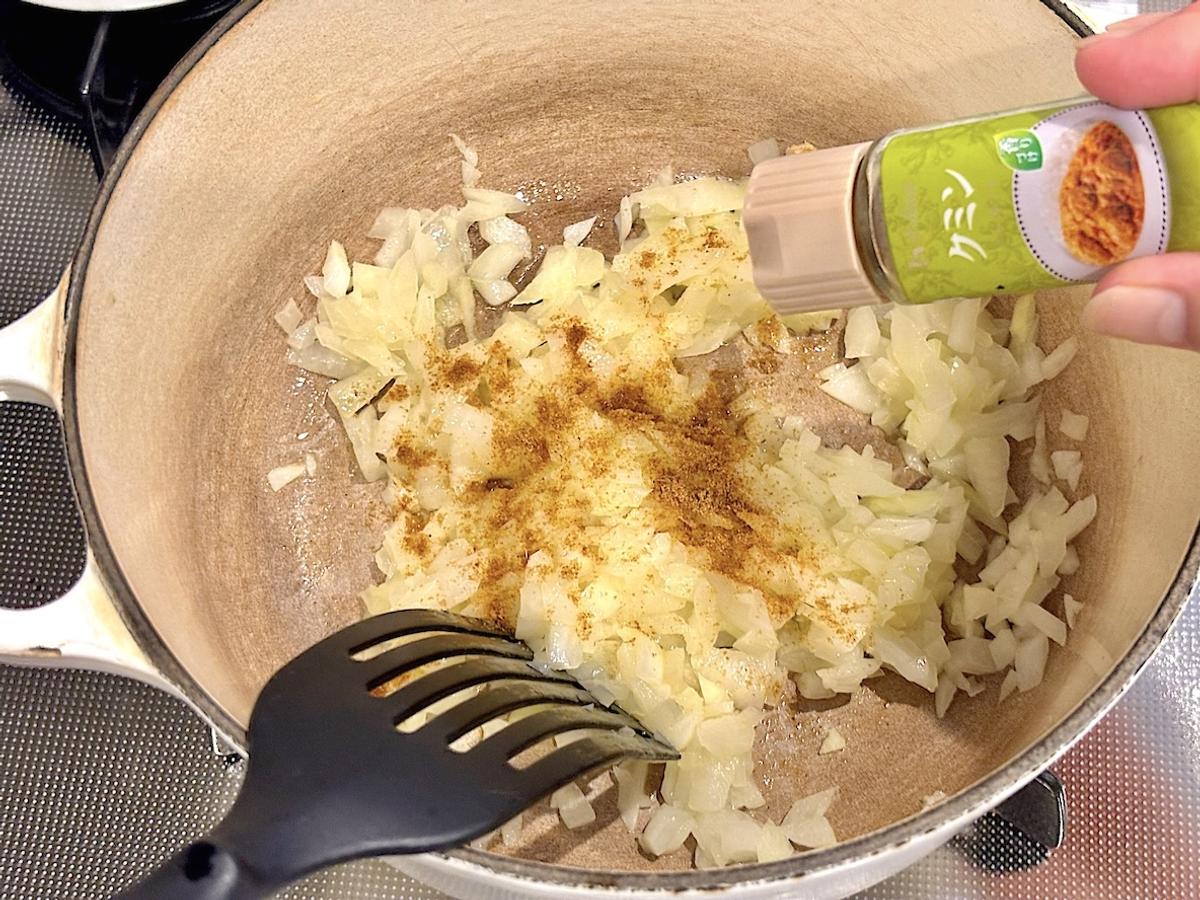 今回はクミンパウダーを使いましたが、カレーパウダーやコリアンダーなどでもOKです。