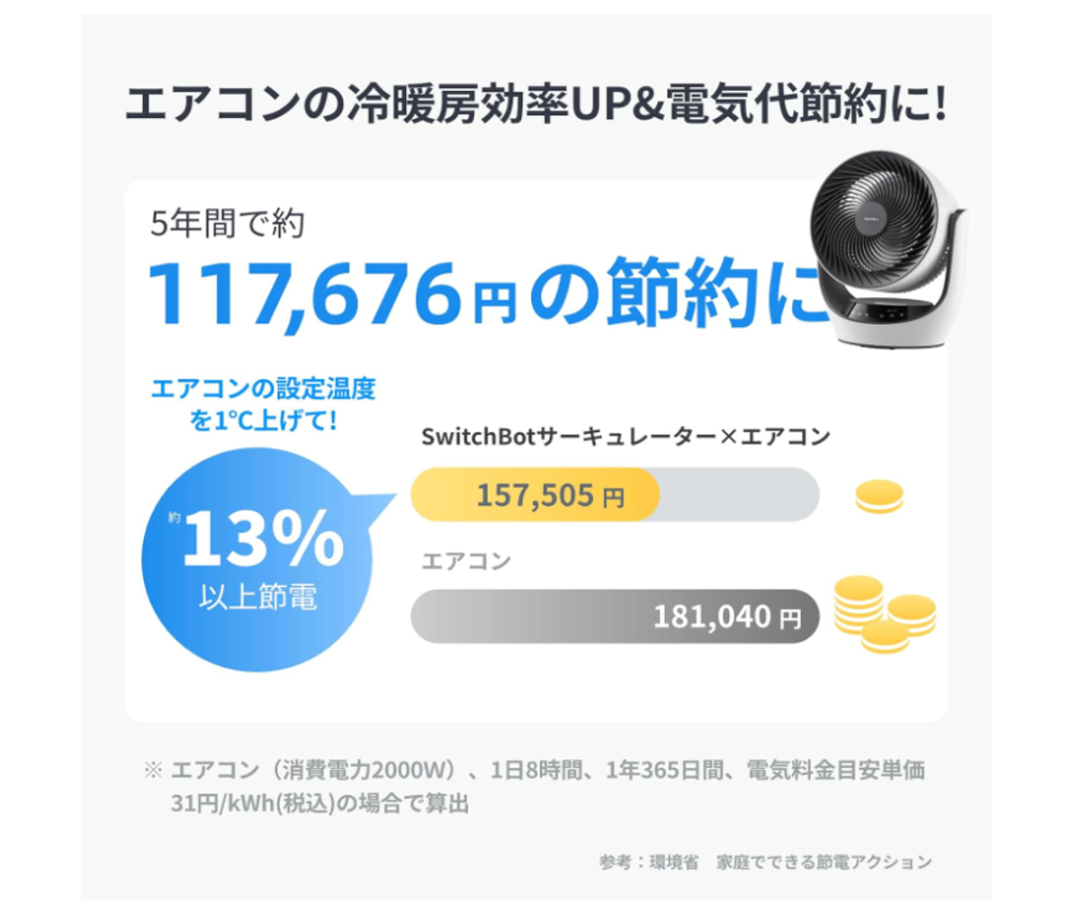 部屋干しにも、リモートワークにも。22dBの静音設計が光る、SwitchBotのスマートサーキュレーターが22%オフ