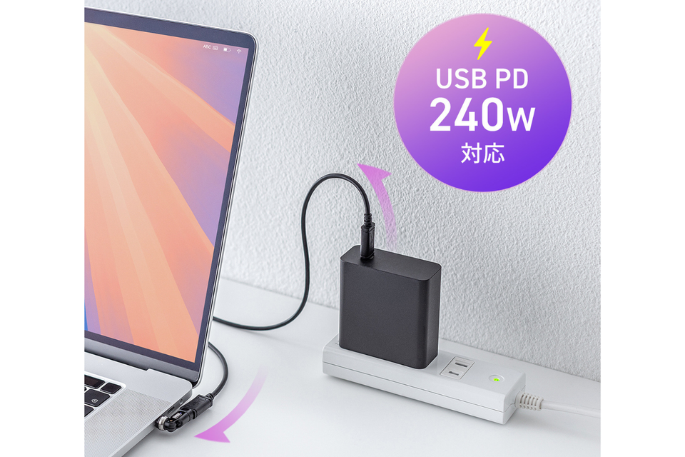 ご安心ください。「AD-USB34CCFBK」は最大240WのUSB PD急速充電に対応しています。つまり、いつもの充電ケーブルの機能を損なうことなく使える、ということです。