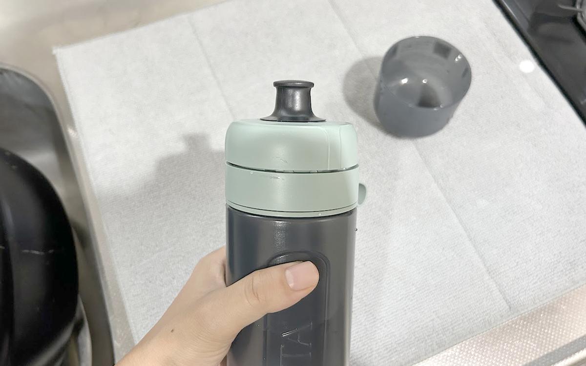 あとはそれを、水道水を入れたボトル本体にセットするだけ!フィルターがあることで得られる安心感がプライスレスです。