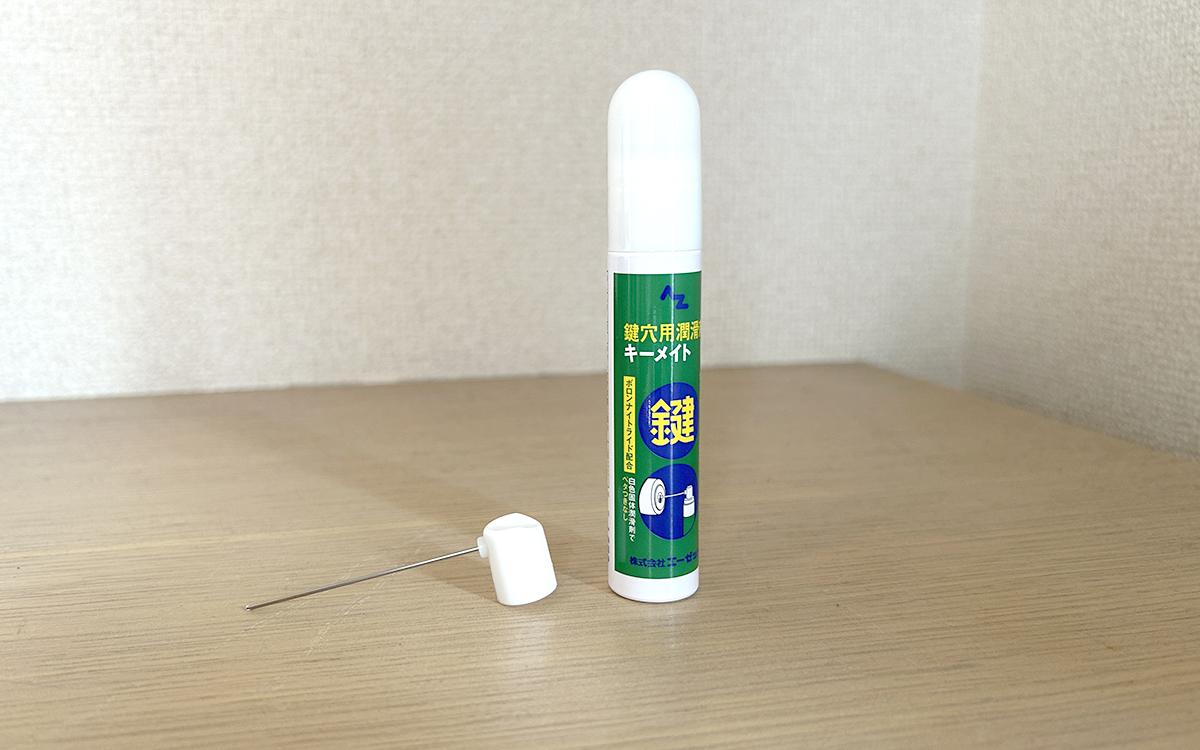 スプレーした後に鍵を数回出し入れすれば完了です。キーメイトは、白色固体潤滑剤でオイルフリー。サラサラのパウダーでべたつきはありません。