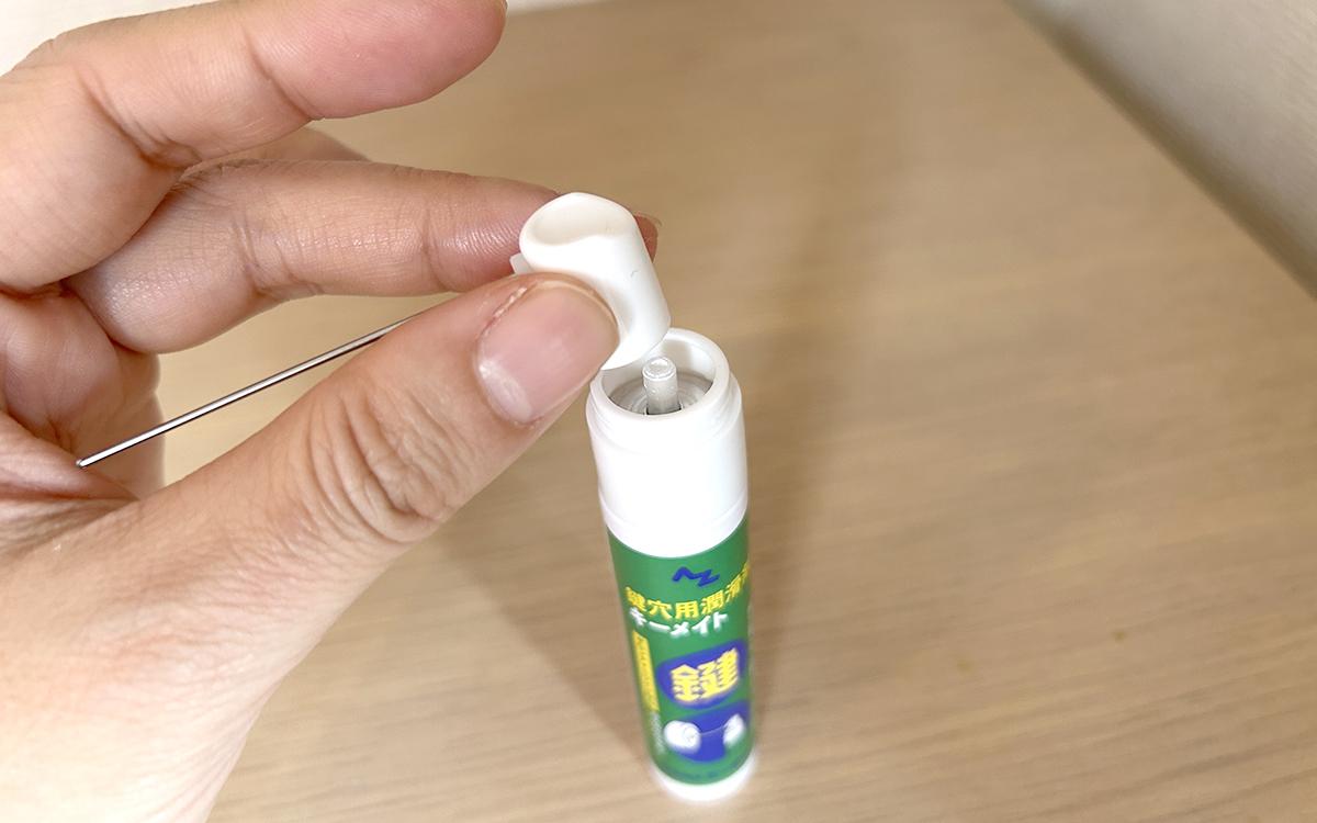 使い方はとってもかんたん。付属の極細ノズルをセットして、ボトルをよく振り、鍵穴に突っ込んだらワンプッシュするだけ!