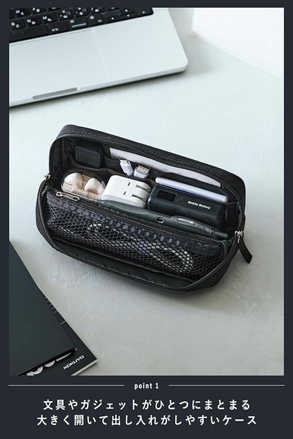 コクヨから発売されているこのペンケース、約20本もの筆記具が収納できる大容量設計。でも、ただ大きいだけじゃないんです! 大きく開く構造で中身が一目瞭然、必要なペンがサッと取り出せます。