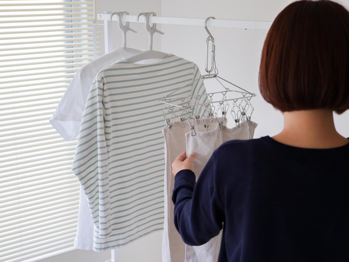 室内干しといえば、冬以外の時季は「湿度」との闘い。いかに生乾きにならないようにカラッと乾かすかが、とても大切なポイントです。