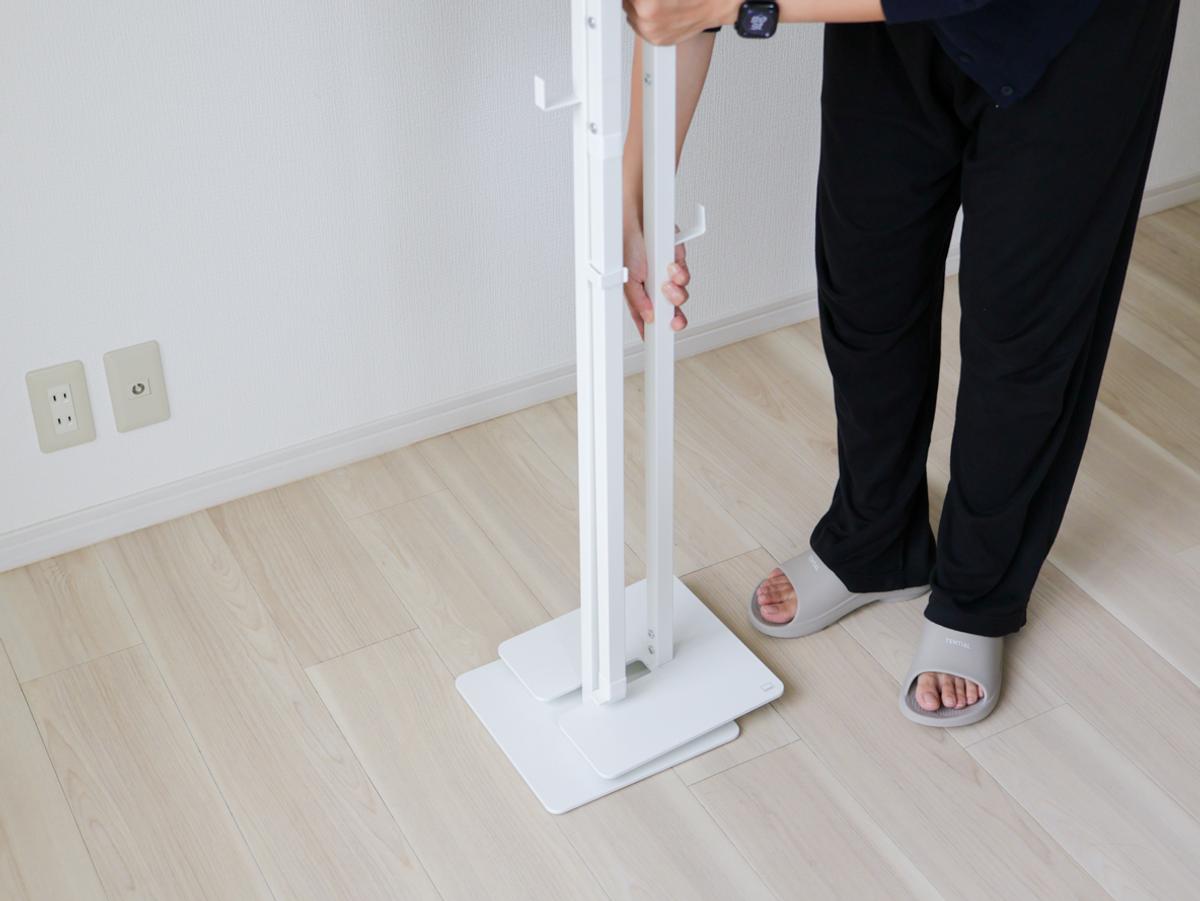 そして、使用しないときは2本の支柱を重ねて収納できるため、部屋の隅に寄せれば圧迫感も感じませんよ。