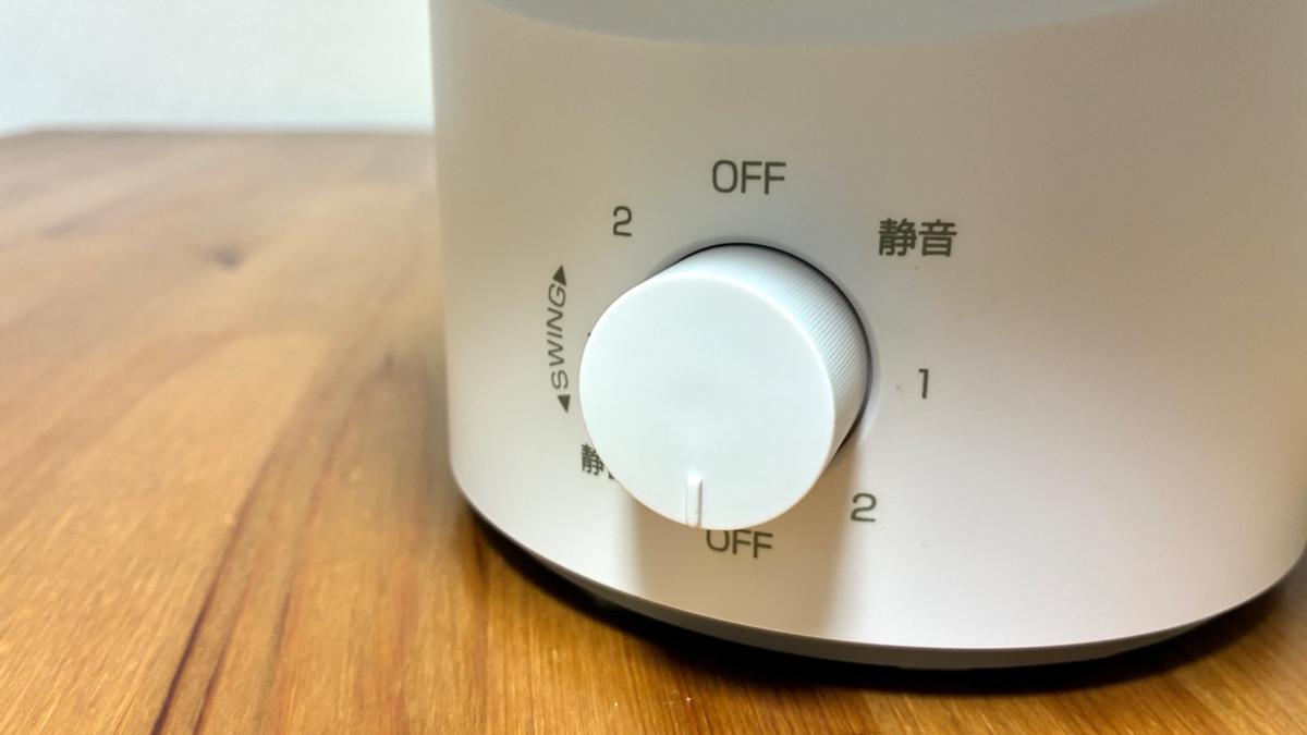風量は、静音・1・2の3段階、それぞれに首振り有無が選べて全6種類。