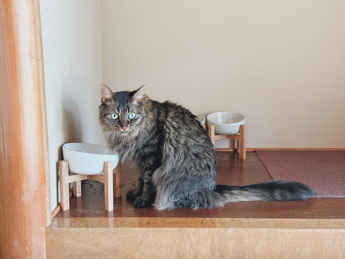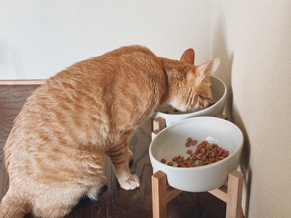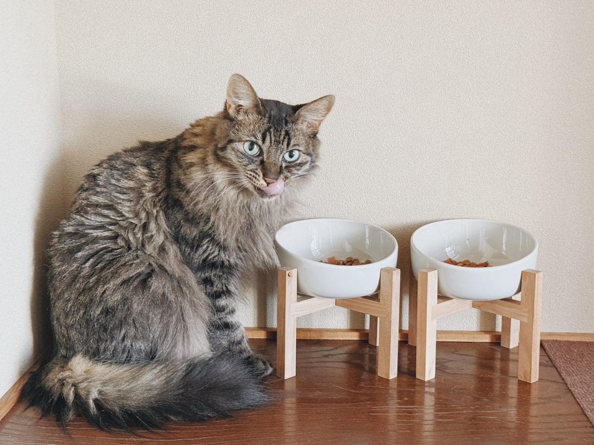 こうして少し高さがあることで、猫たちは自然な姿勢で食べることができ、吐き戻しの防止にもつながるそうです。