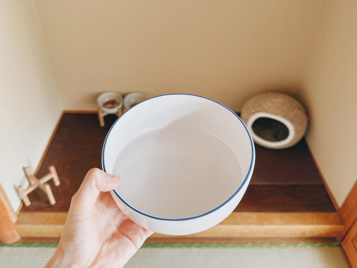 ですが、わが家には軽いお皿に水を入れておくと遊んでしまう猫がいるため、この重みはむしろ安定感があっていいな〜と感じています!