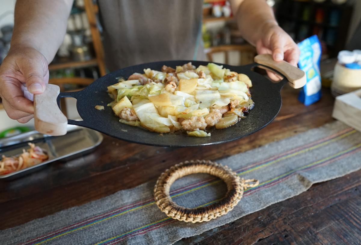そしてなんといっても、中心部が浅く窪んでいるこのカタチが絶妙。フライパンとしても鍋としても使え、さまざまな料理をこれひとつで調理可能にしてくれます。