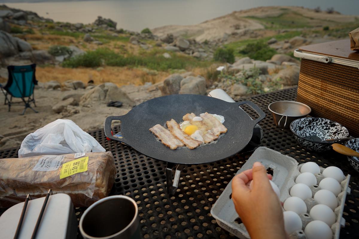 また、パンや目玉焼きを作るときなどは、通常のフライパンよりも焼き面積が広いため、一度にたくさんのモノを焼くことができます。