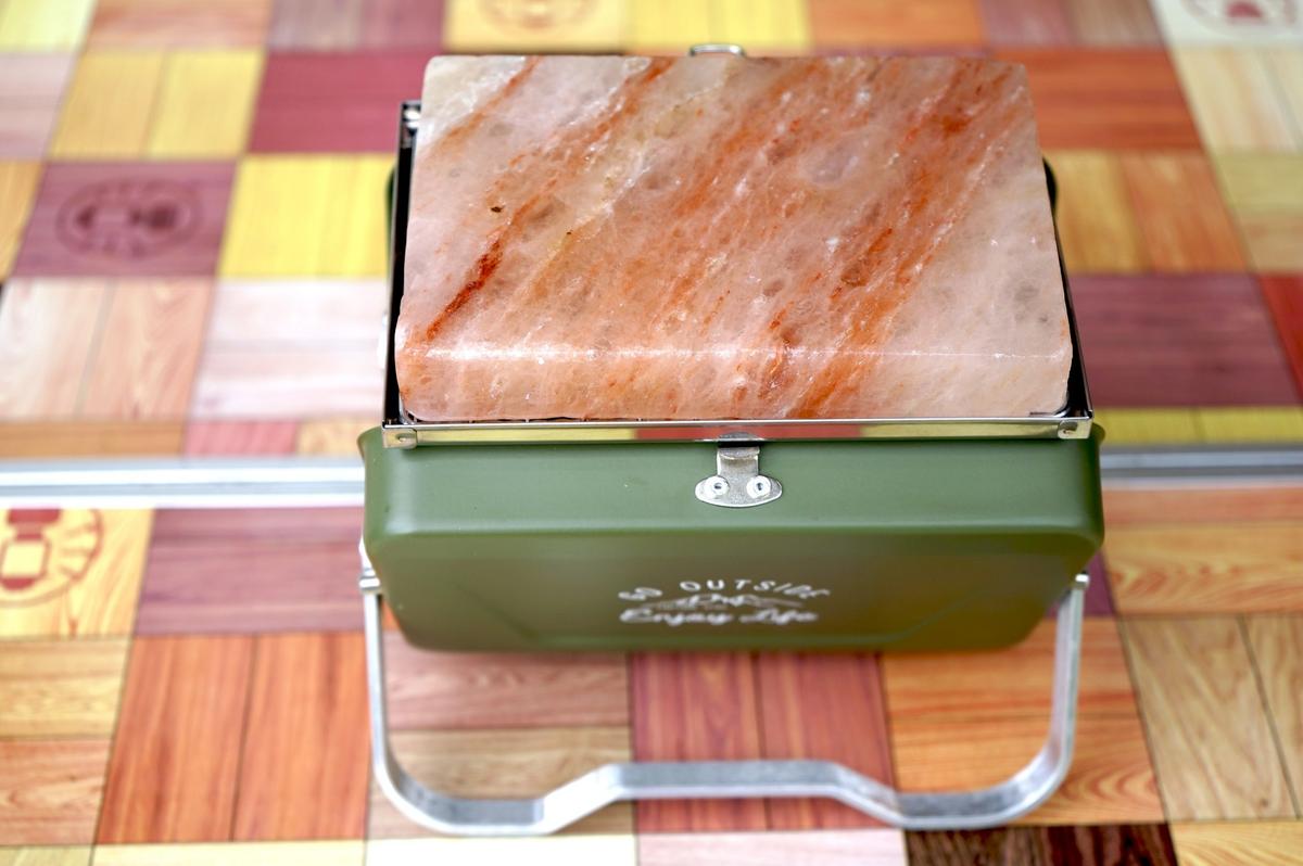 各メーカーから岩塩プレートが発売されていますが、厚みがあって丈夫そうで、コスパが良いことからキャプテンスタッグ製のものをチョイス。岩塩はヒマラヤ産岩塩を使用しています。