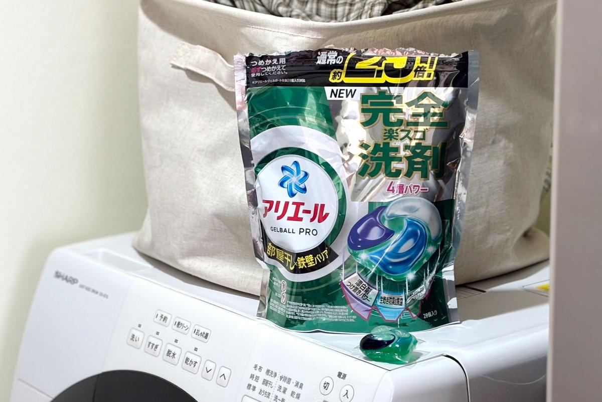 わが家はドラム式洗濯機を使っていますが、洗剤の自動投入スペースは掃除の手間が気になって利用していません。そこで頼りにしているのがジェルボール。洗濯物を入れたらポンと1つ放り込むだけでOK。メンテナンスも不要で、本当にラクなんですよね。