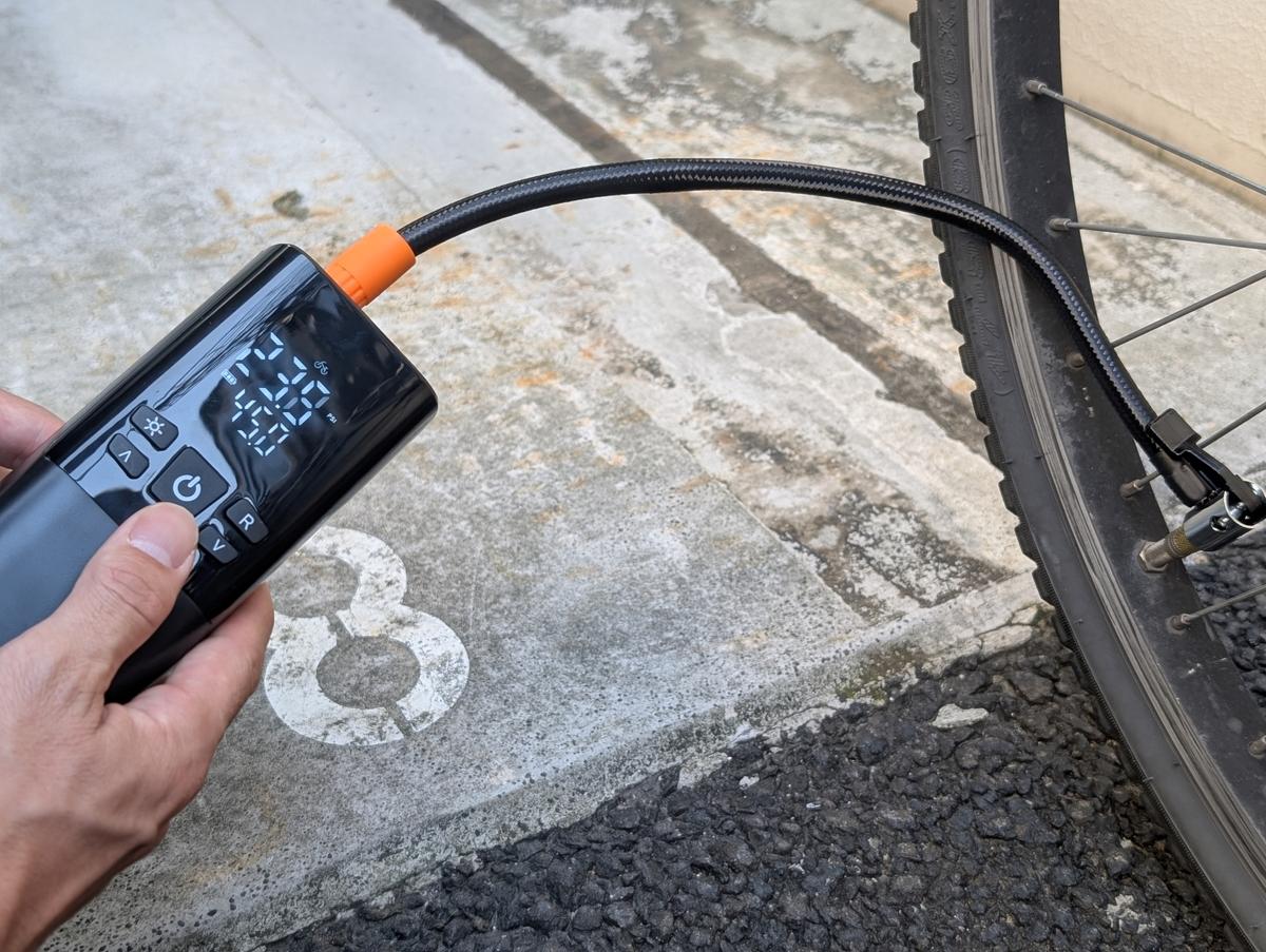 さらに、毎分25,000回転の強力なモーターを採用しているため、他の同タイプの空気入れに比べて25%高速だそう(同社比)。確かに「空気入れてます」感はすごかった!