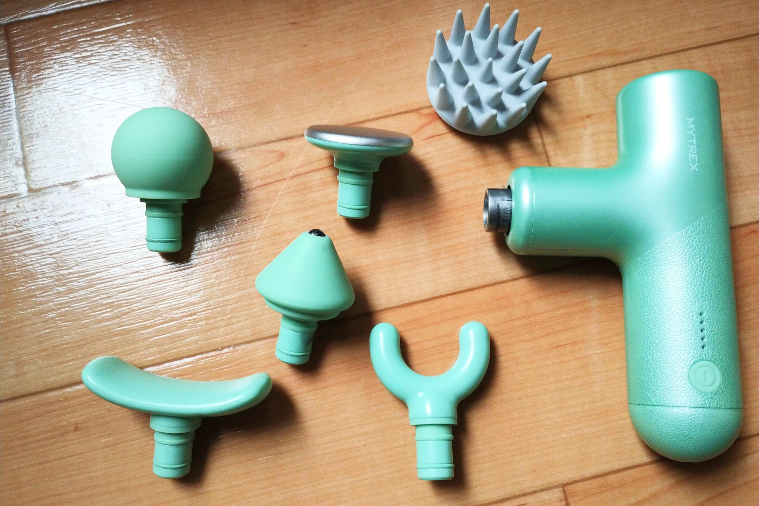 マッサージガンを使っていくと、アタッチメントがいかにその部位に適しているかがわかる! アタッチメントが多いと、全身をほぐす楽しみも増します。